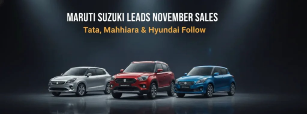 Post-festive season demand remained strong, driving impressive sales growth for leading automakers in November compared to the same month last year. Maruti Suzuki India recorded its highest-ever total sales, including exports, at 2,29,021 units, marking a 26% year-on-year increase. Domestic passenger vehicle dispatches rose 21% to 1,70,971 units, while total domestic sales, including LCV Super Carry, hit 1,74,593 units—the highest November sales in 40 years. Small cars and SUVs both saw significant growth, with retail sales up 31%, and small car sales—including S Presso, Alto K10, Celerio, and WagonR—surging 37%. SUVs now contribute 30% of total sales, though factory stock is low, with pending bookings around 1.5 lakh units.
