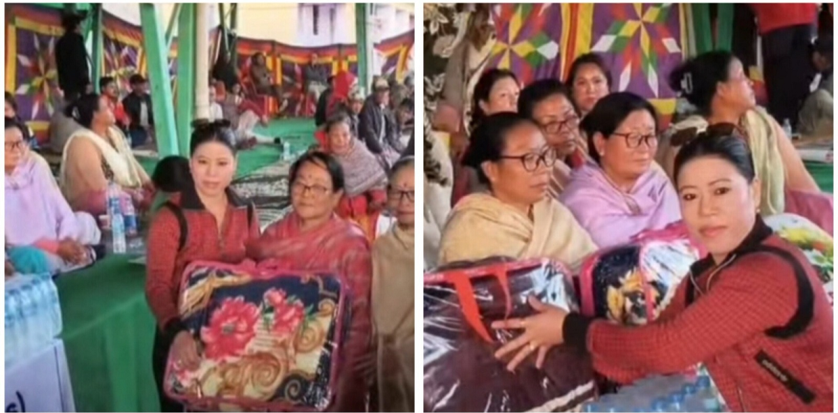 Legendary Indian boxer MC Mary Kom provided humanitarian aid to internally displaced persons (IDPs) affected by the ongoing conflict in Manipur on December 17. She distributed blankets and shared messages of solidarity at Lanboikhongnangkhong in Imphal West, a site of continuous protests led by the Coordinating Committee on Manipur Integrity (COCOMI) for the resettlement of displaced families by December 31. Mary Kom emphasized the initiative as a meaningful gesture to bring comfort and hope to the affected families.